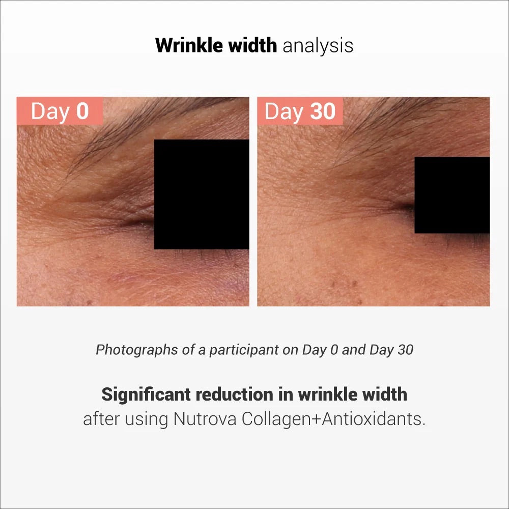 There were significant improvements at Day 30 and Day 60 of using Nutrova Collagen+Antioxidants, while no significant changes were seen through 30 days of using the placebo.